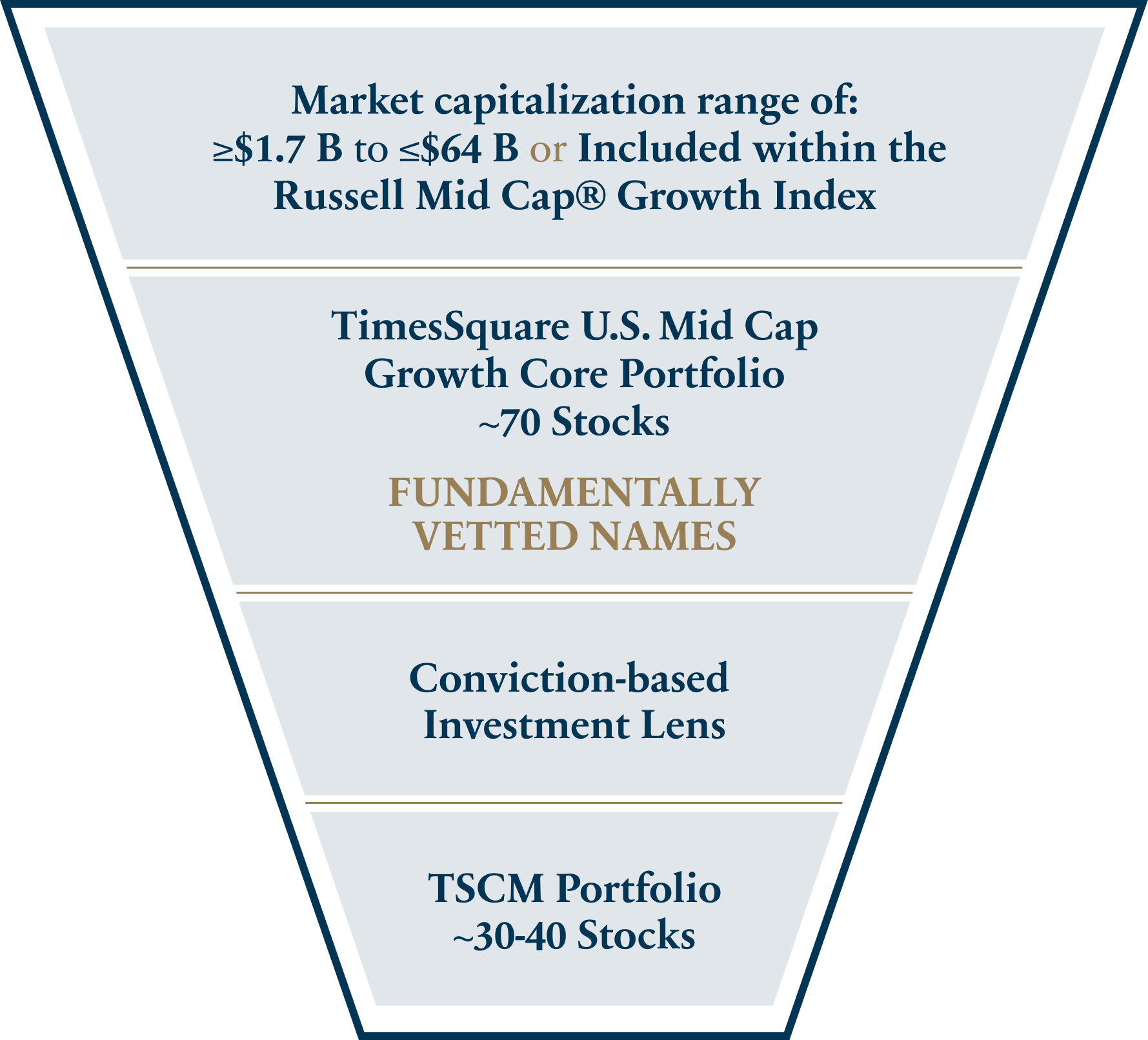 The Fund is actively managed to provide targeted exposure to the U.S. mid-cap growth market. TimesSquare applies a bottom-up, research-driven approach to identify companies that demonstrate: